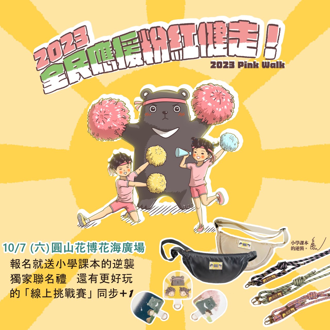 三、「2023全民粉紅運動」實體線上健走活動,可透過活動網站隨時線上報名,報名一次即享有實體健走+線上挑戰賽資格,並獲得人氣貼圖《小學課本的逆襲》聯名時尚半月包、手機掛繩夾片組等,超值報名禮包。