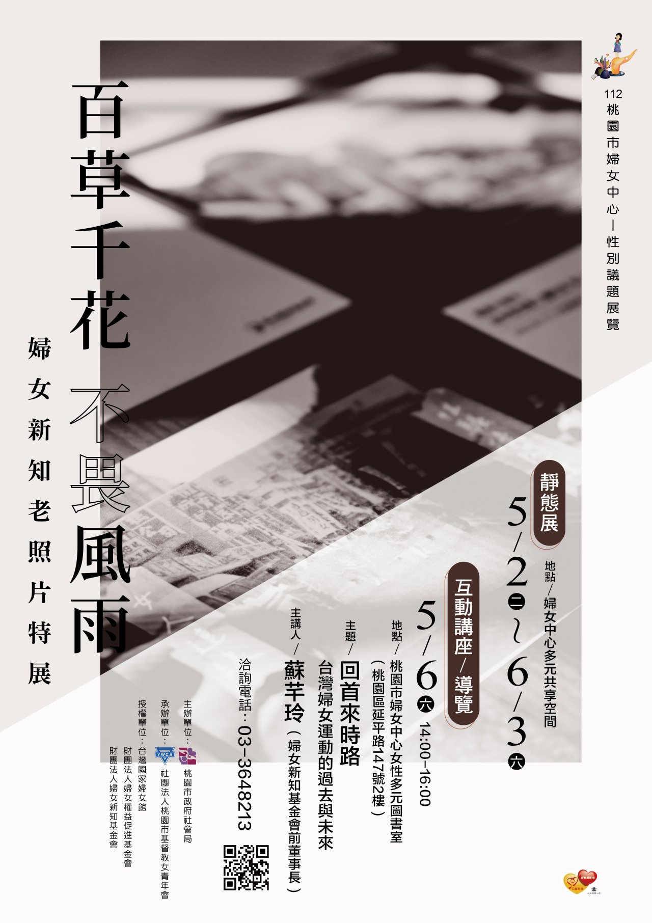 桃園市基督教女青年會與財團法人婦女權益促進基金會及財團法人婦女新知基金會合作辦理《百草千花不畏風雨》老照片特展,詳細活動訊息可至桃園市婦女中心官網(
